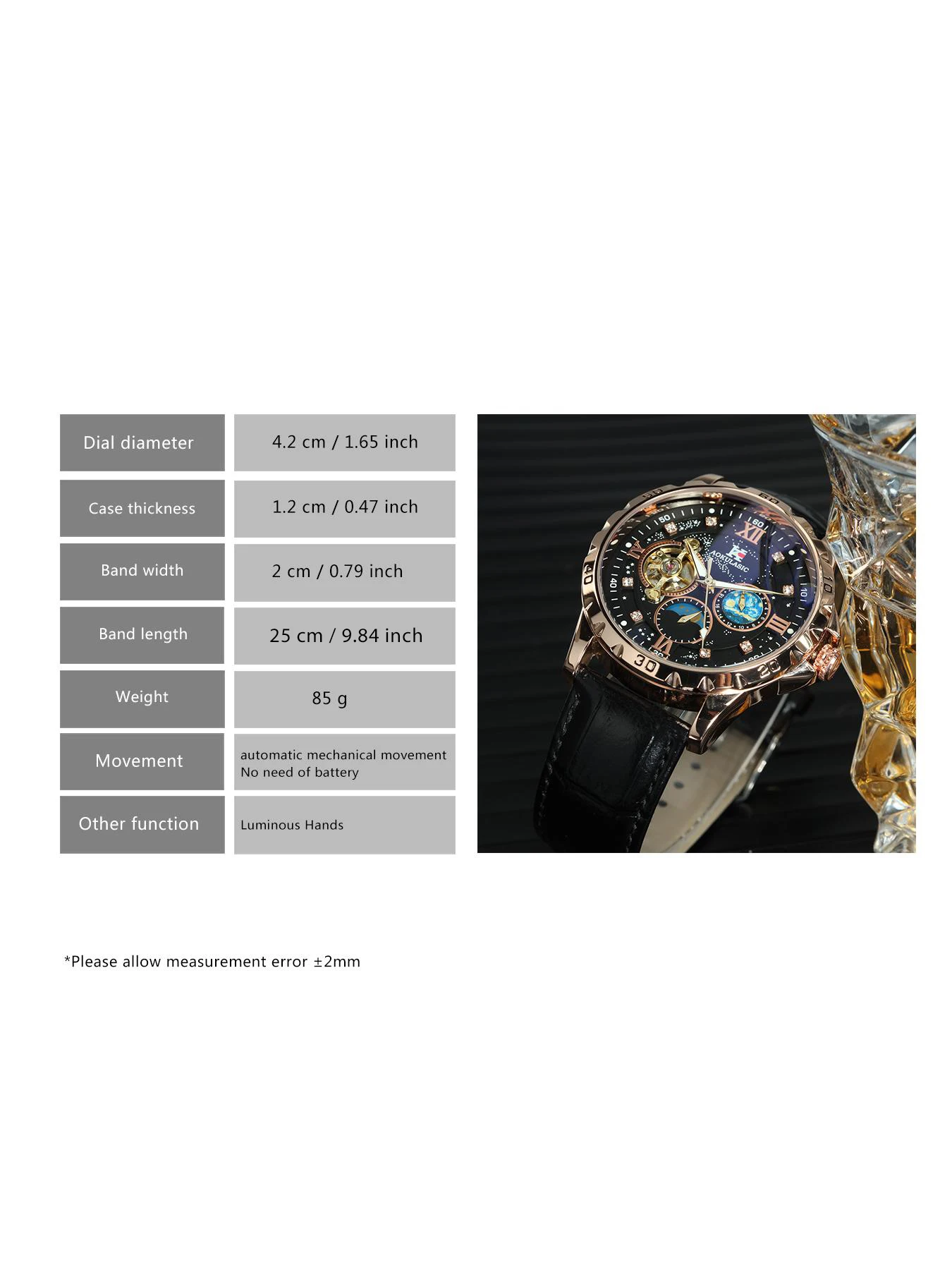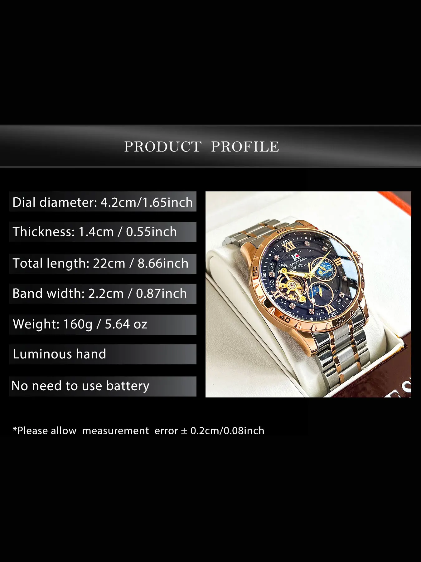 Movement: Automatic Self-Wind Mechanical(No battery needed)