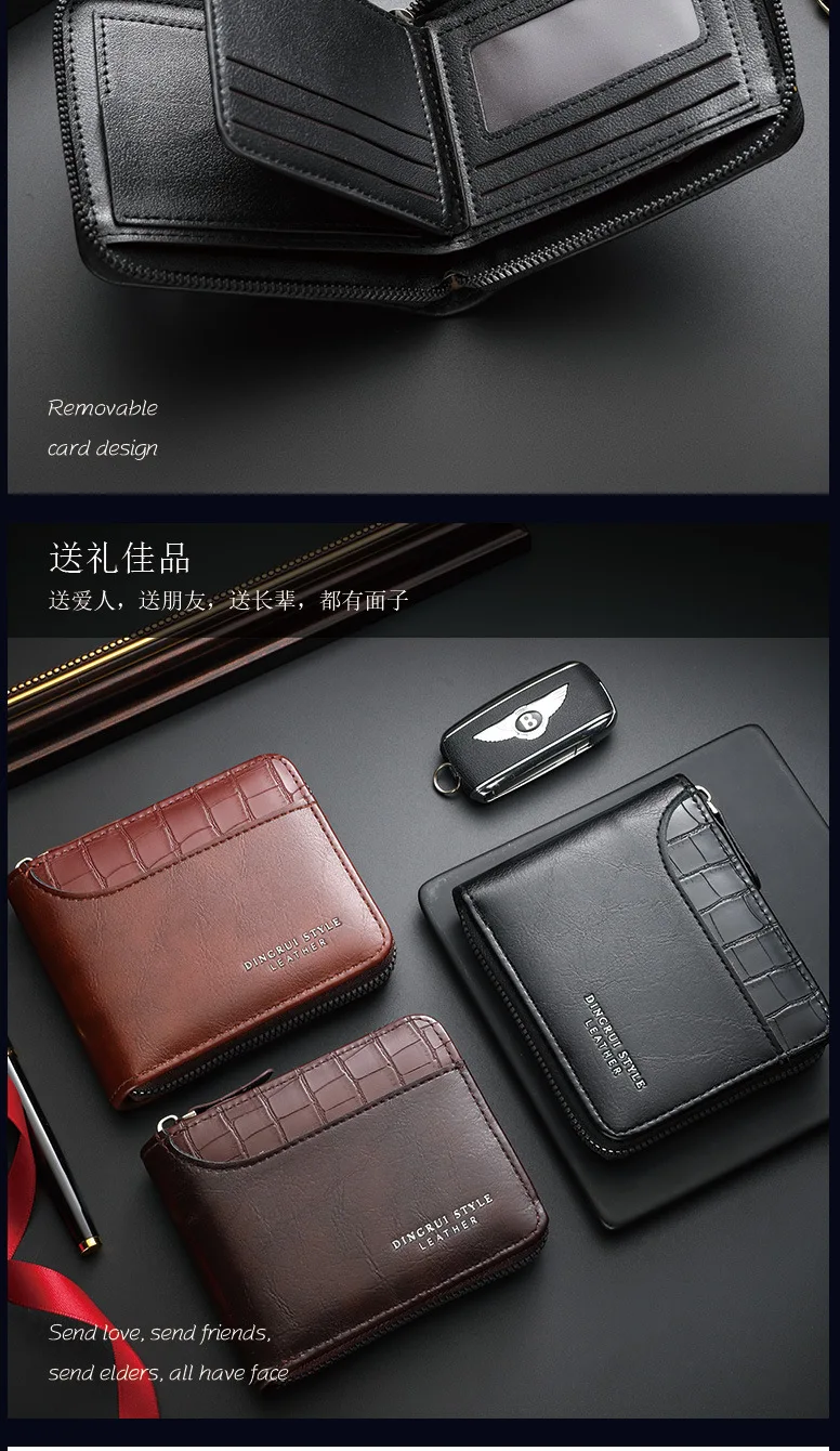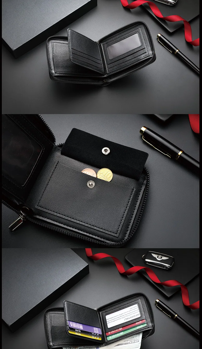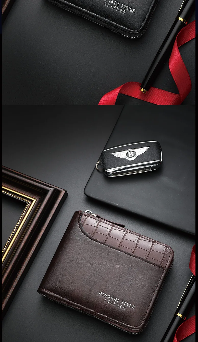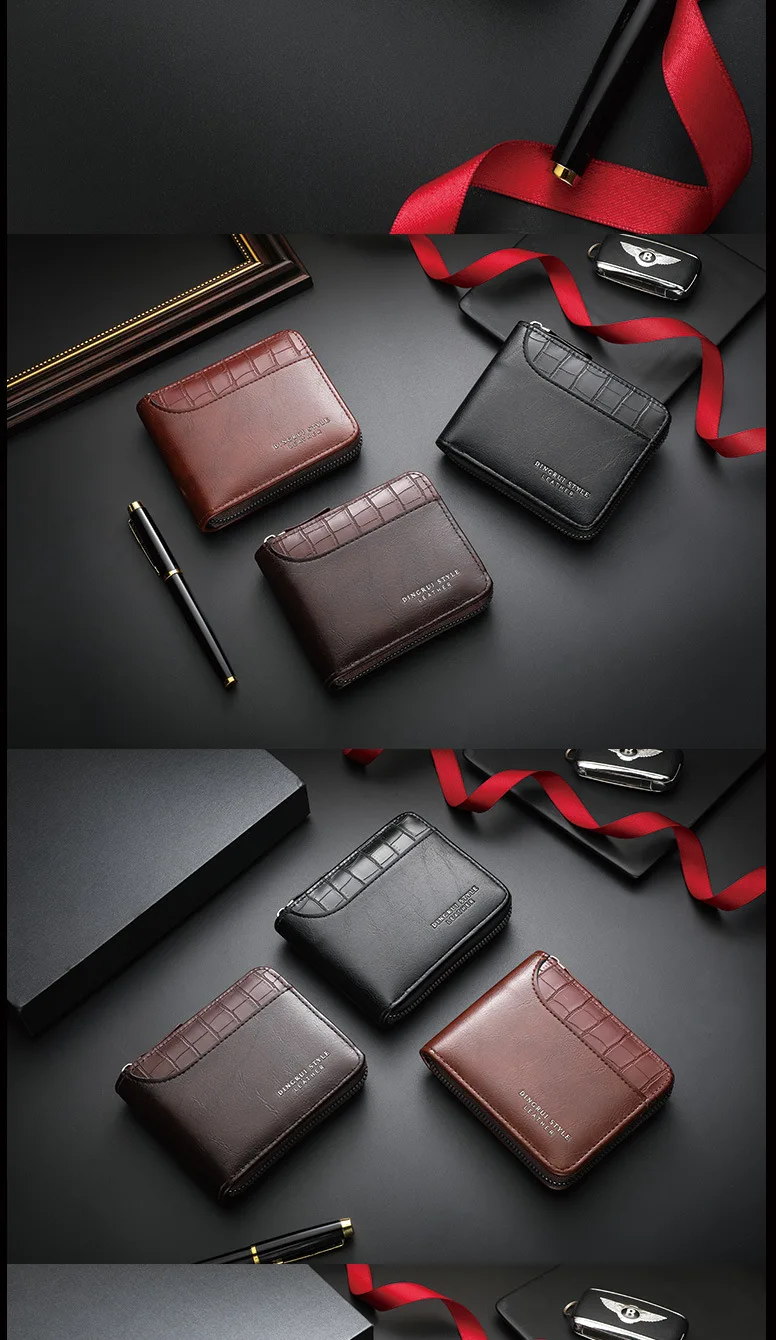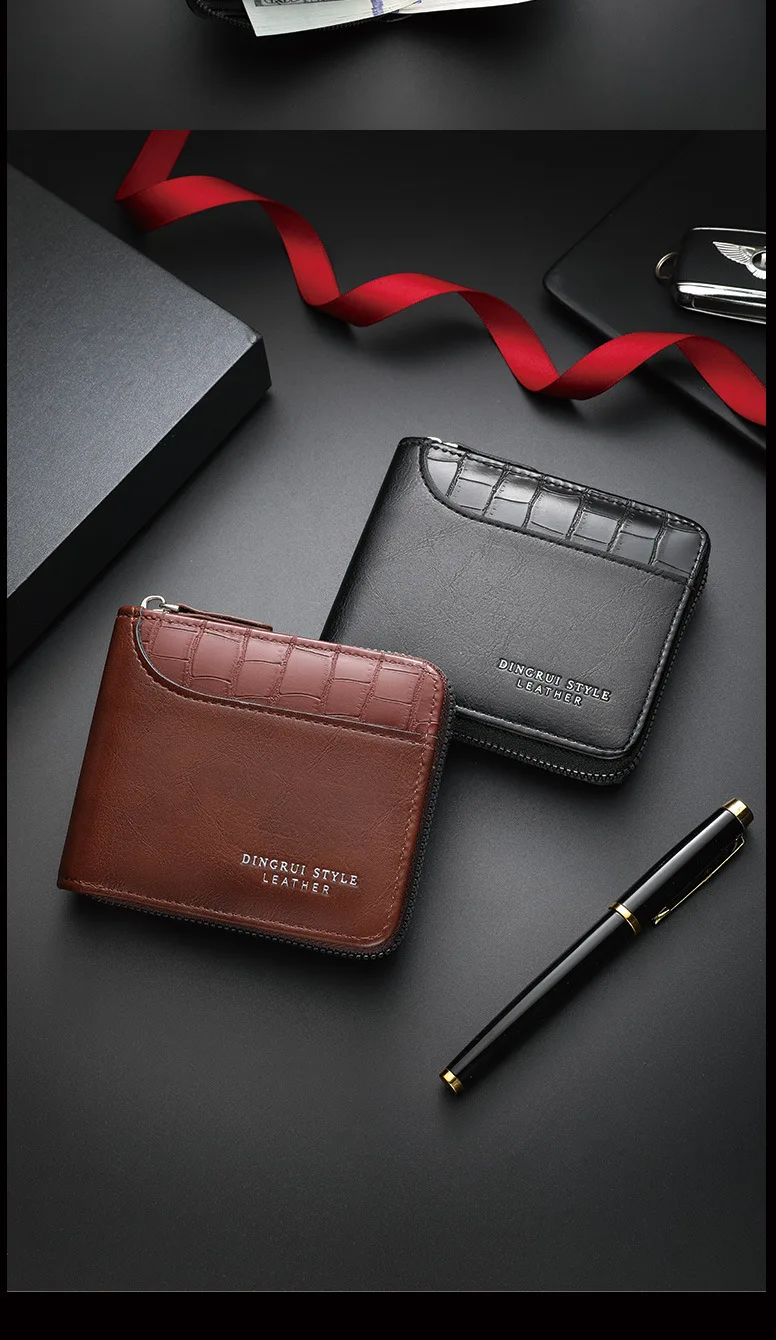Carteira Masculina de Couro, Carteira de Luxo Masculina, Porta-Cartões Masculino com Zíper e Bolso para Moedas, Carteiras RFID, Presentes Masculinos, Bolsa de Dinheiro, Presentes de Aniversário.